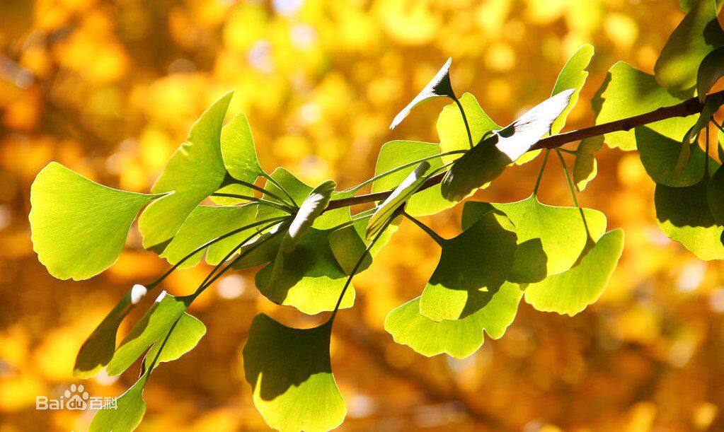 银杏(学名:Ginkgo biloba L.),为银杏科、银杏属落叶乔木。银杏为落叶大乔木,胸径可达4米,幼树树皮近平滑,浅灰色,大树之皮灰褐色,不规则纵裂,粗糙;有长枝与生长缓慢的距状短枝。幼年及壮年树冠圆锥形,老则广卵形;枝近轮生,斜上伸展(雌株的大枝常较雄株开展)。叶互生,在长枝上辐射状散生,有细长的叶柄,扇形,两面淡绿色,无毛。在长枝上散生,在短枝上簇生。它的叶脉形式为“二歧状分叉叶脉”。在长枝上常2裂,基部宽楔形。球花雌雄异株,单性,生于短枝顶端的鳞片状叶的腋内,呈簇生状。4月开花,10月成熟,种子具长梗,下垂,常为椭圆形、长倒卵形、卵圆形或近圆球形。种皮肉质,被白粉,外种皮肉质,熟时黄色或橙黄色。